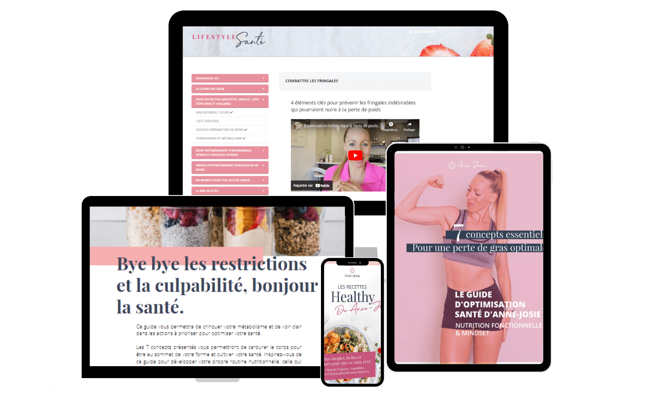 💗 Une foule de ressources téléchargeables : e-books, menus, banques de recettes, plans d’entraînement, journaux de bord, guides de nutrition sportive, etc.